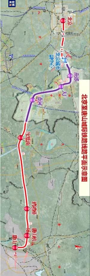 京唐城际铁路起自北京城市副中心综合交通枢纽站,终至河北省唐山市既有唐山站,途经北京市通州区、河北省廊坊市、天津市宝坻区、河北省唐山市,线路全长约148.7公里,其设计最高时速350公里。开通初期,由北京站始发终到。待北京城市副中心站综合交通枢纽投运后(计划2024年底),改由北京城市副中心站始发车。