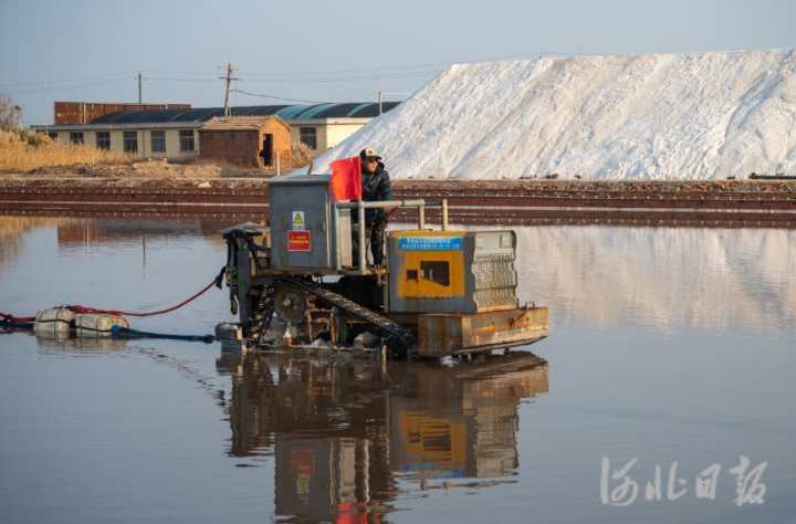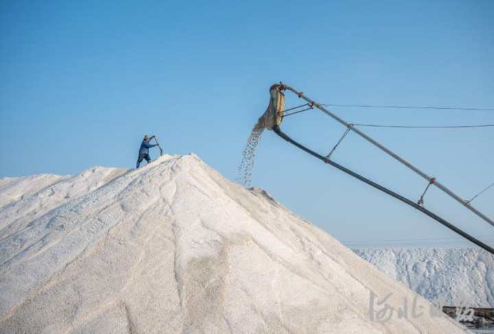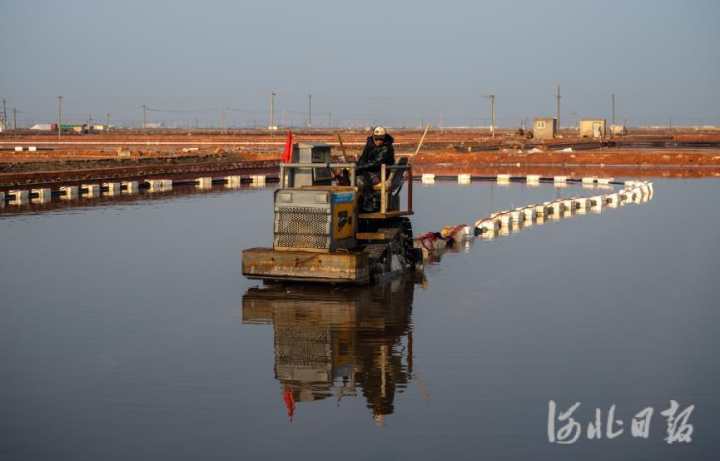 日前,位于唐山市曹妃甸南堡开发区的南堡盐场35万亩盐田进入秋盐收获期,现场工人正在收盐。近年来,曹妃甸依托南堡盐场资源优势,大力发展盐化工循环经济产业,经济效益不断凸显。 河北日报记者赵杰摄