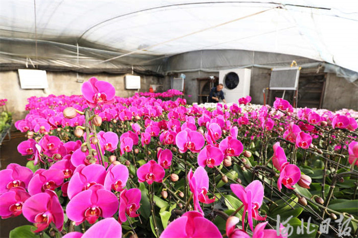 12月6日,唐山市丰润区光新庄子村农民在温室大棚内管护蝴蝶兰。