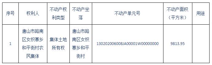 12月8日,中国唐山网站发布了《不动产首次登记公告(和平街村集体土地所有权)》,详情如下: