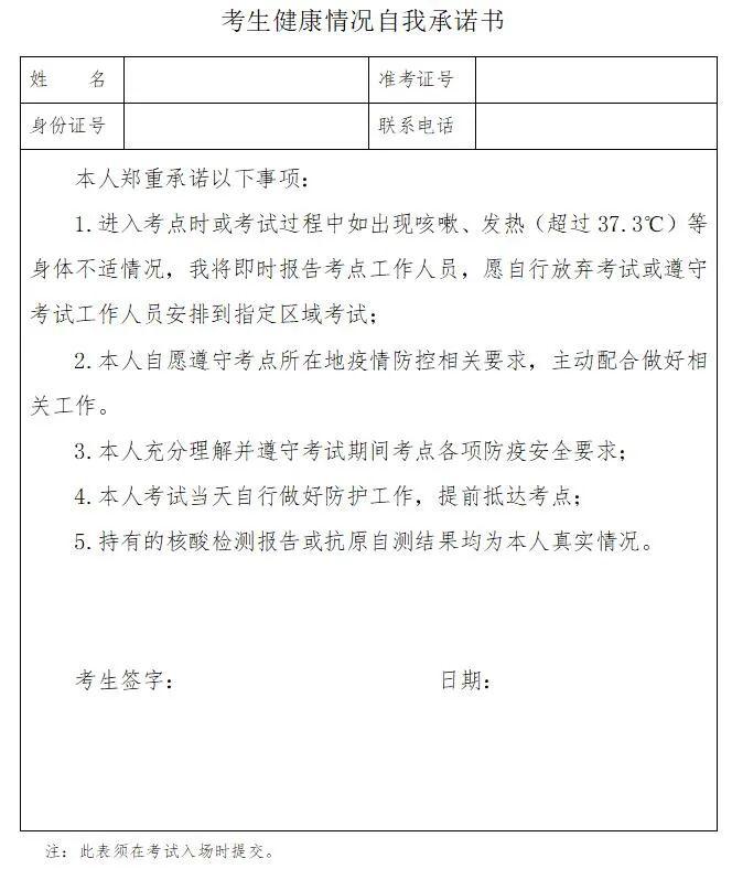 附件:考生健康情况自我承诺书
