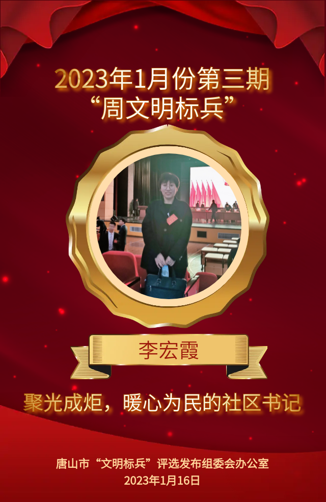 李宏霞,路北区河北路街道北岸嘉园社区党支部书记兼居委会主任。她十几年立足岗位,恪尽职守,凭着强烈的责任心、出色的工作能力、独创的暖心工作模式,得到了上级领导的赞誉,更受到广大居民的信赖。辖区内下水井盖损坏了,她及时联系相关部门第一时间更换好;雨后积水造成背街小巷多处坑洼,她带领志愿者们冒着酷暑找来筑路材料铺设平整;在点滴琐事上,她都能挺身而出、亲力亲为。辖区内有位困难孤寡老人叫霍启海,李宏霞逢年过节都为他送去生活物资,还为他筹备各季衣物,关心关注他的切实生活。2022年9月霍启海老人的儿子在北京突发脑溢血,她多方协助联系,安抚老人情绪,助其解决困难;在老人儿子不幸病故后,李宏霞更是各种协调操办,霍启海打心眼儿里有说不出的感动。正是李宏霞在居民工作中的真挚付出,才能汇聚微光成炬,温暖居民心房,让大爱将辖区的天空渲染的更加晴朗!