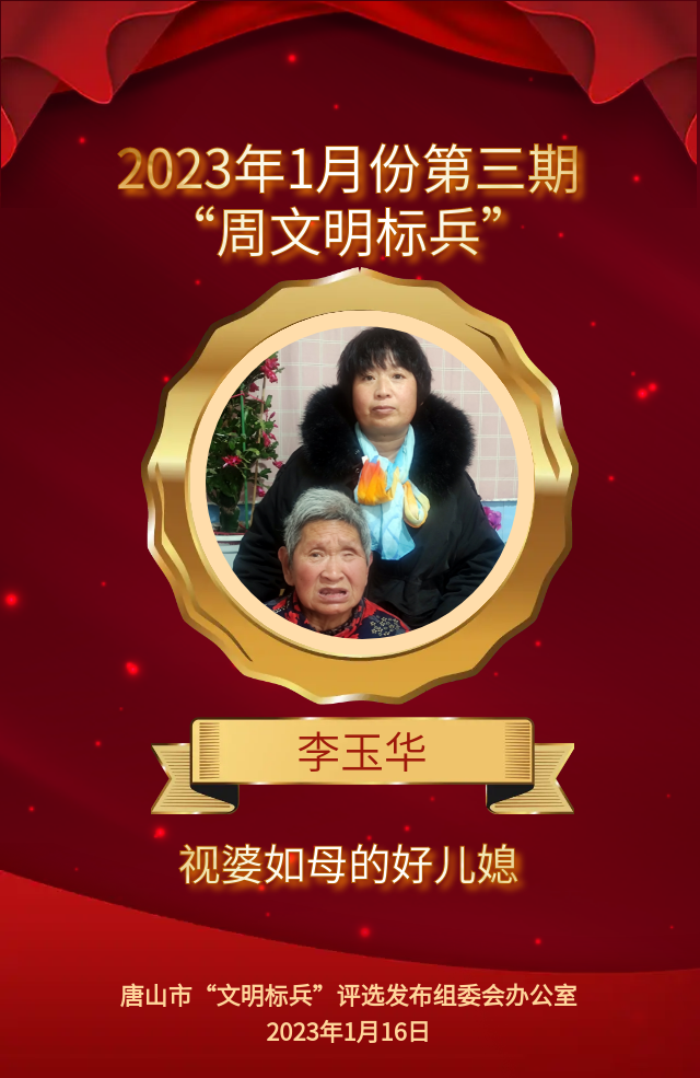 李玉华,遵化市侯家寨乡侯家寨村人。李玉华1997年嫁到侯家寨,婚后不久公公因病去世,婆婆得了青光眼,而后左眼接近失明。在青光眼术后,婆婆得了严重的脑梗塞,左半身栓死,昏迷了半个月之久,李玉华放下所有事情,在医院悉心照顾、精心陪护。她每天为婆婆打流食,擦屎端尿,擦拭身体,为婆婆按摩,活动四肢,防止肌肉萎缩,不厌其烦,终是希望婆婆可以早点醒过来。她把两个不大的女儿托付给亲戚,自己留在医院照顾老人。三个月婆婆出院后,她的担子更重了,为了方便照顾,她毅然决定跟婆婆住在一起,每天夜里都起来给老人盖被子、翻身,每天需要来回多次把婆婆从炕上抱到轮椅。她有时间就为婆婆锻炼、做康复,同时加上照顾两个孩子上学,每天大量的家务劳作,她从没有一句怨言。就是这样日复一日、年复一年,一直到现在已经是十四个年头了。对婆婆来讲,李玉华胜过亲生,她的品行更是晚辈们学习的榜样。