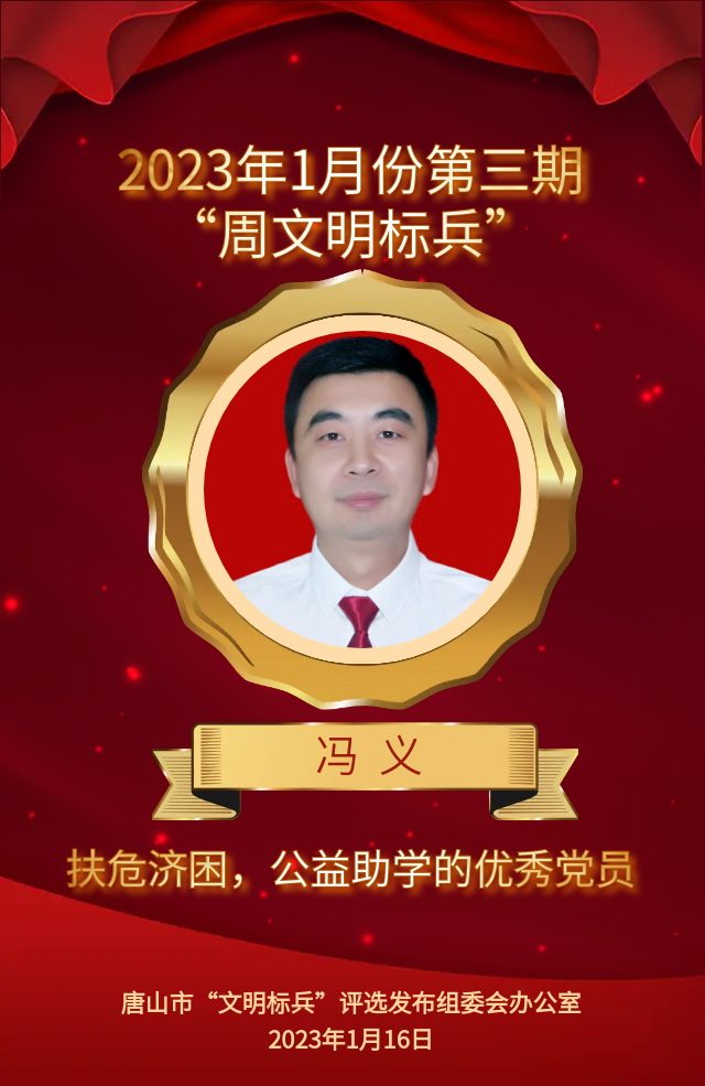 冯义,曹妃甸区第八农场党委办公室主任。他积极组织开展农场“1+X”精准帮扶活动,号召党员干部每年精准帮扶弱势群体达500余人。他曾带领办公室同仁主动与某村当时的贫困户张兆强结成帮扶对子,因张兆强患有先天性癫痫,且经常发作、不能正常劳动、需要人照顾。冯义便等人便经常到张家探望,帮助他采购生活用品、收拾家务、改善生活,并与市各大医院癫痫科积极联系就诊治疗和买药报销,使其感受到家人的温暖。冯义还与某村薄仕珍进行结对帮扶,薄老早年丧偶,无退休收入,女儿出嫁后身边缺人照顾,冯义便经常到老人家里做农活,过年过节更是带着妻儿为老人送去生活用品和慰问金,陪老人过节。冯义热心公益事业,关心青少年发展,2015年以来,他带动身边同事10余人参加爱心助学活动,到周边各县区和保定山区走访摸底,驱车百里为孩子们送去新衣服、新书包。他每年自掏腰包,助学款达万余元,自驾里程2万公里,累计资助慰问受助学生百余名,极大彰显了一名党员的情怀与担当。