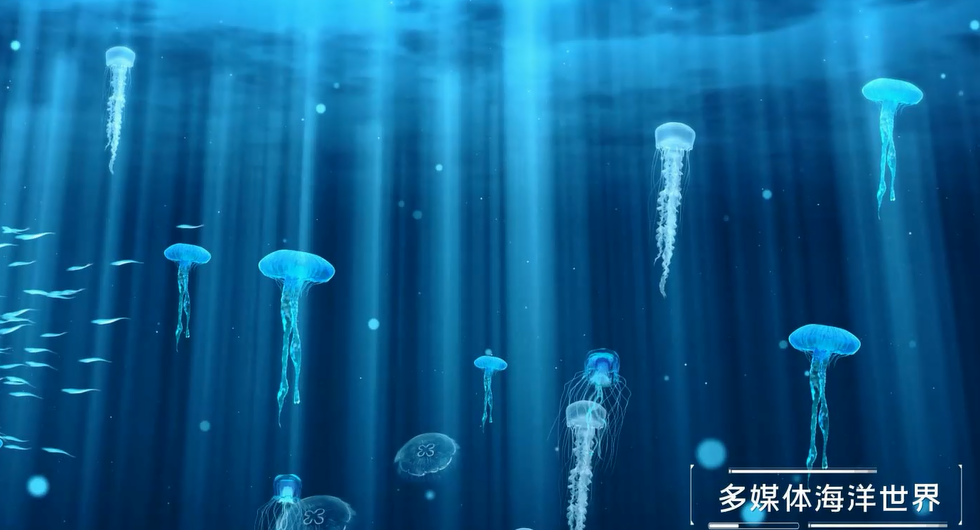 在负一层“互动娱乐”区域,参观者可以走进大型多媒体海洋世界,用彩笔绘出属于自己的海底秘密。