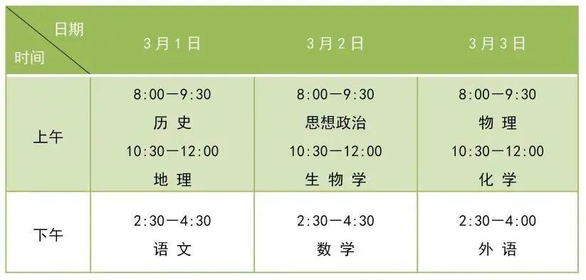 因受新冠病毒感染疫情影响,河北省教育考试院决定将原2022年下半年全省普通高中学业水平合格性考试九科笔试科目考试推迟至2023年3月1日至3日进行。具体考试时间安排如下: