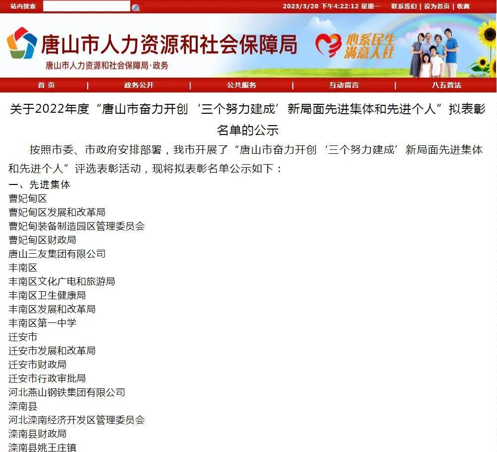 关于2022年度“唐山市奋力开创‘三个努力建成’新局面先进集体和先进个人”拟表彰名单的公示