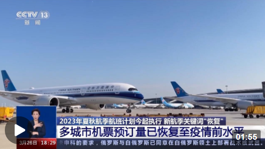 新航季,新期待,据国内某旅游平台数据显示,2023年3月以来,国内多个城市机票预订量已恢复至疫情前水平,且部分城市已超过2019年同期,预订量前25名的城市中,三亚、成都、杭州、广州、沈阳、海口、哈尔滨、长沙、重庆进出港预订量已超过2019年。而来自国家移民管理局的数据显示,“乙类乙管”实施两个月以来,中国出入境流量大幅回升。此次航班换季后,很快要迎来五一小长假、端午假期,预计出境游也会迎来爆发点。对于旅客来说,新航季意味着坐飞机出行将有更多选择,更加方便。