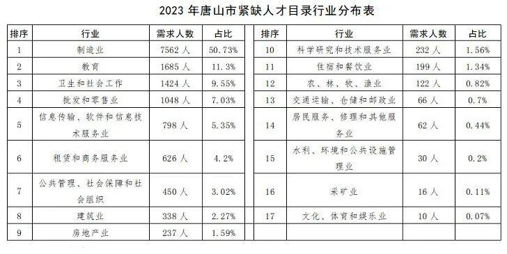 《目录》围绕贯彻落实全市“12345”总体工作布局,聚焦“三个努力建成”和“三个走在前列”目标任务,为推进我市“4+4+N”现代化产业链条高质量发展,编制发布2023年紧缺人才需求情况,努力实现人才开发与产业结构、企业需求的紧密对接。本次人才需求调查,发动全市14个县(市、区)和4个开发区、管理区人才工作部门,同时对我市规模以上企业、重点项目单位、学校、医院、科研机构及驻唐中省属企事业单位进行了深入调查,为《目录》的编制提供了较为详细、充分的基础资料。