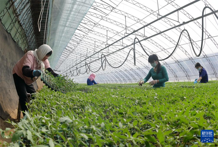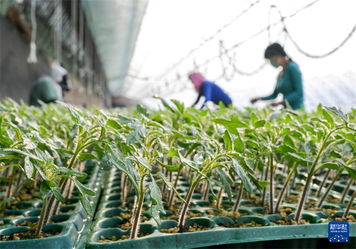 近日,随着气温回升,河北省唐山市曹妃甸区的农民抢抓农时进行蔬菜育苗工作。