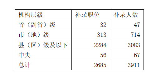 中公教育专家卢静斐分析,从总体补录职位机构层级来分析,县(区)级及以下补录的职位最多,有2284个,共补录3083人,占本次补录总人数的78.8%。